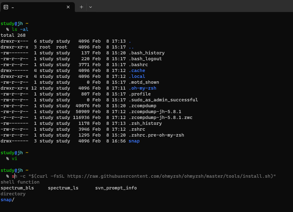sh -c "$(curl -fsSL https://raw.githubusercontent.com/ohmyzsh/ohmyzsh/master/tools/install.sh)"