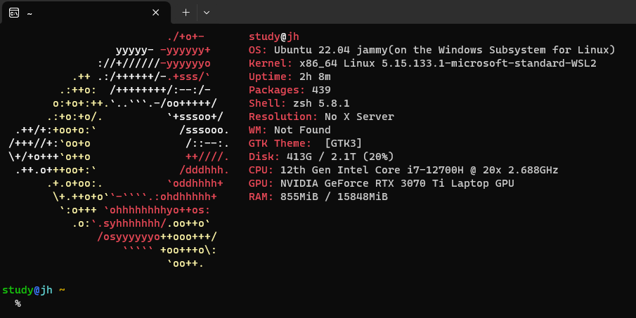 사용 방법은 screenfetch를 입력하면 된다. 여기에 옵션을 줘서 색을 빼거나, 로고를 빼거나, 로고만 출력하거나, 로고를 바꾸거나, verbose 하게 출력하거나… 그러한 일들을 할 수 있다.