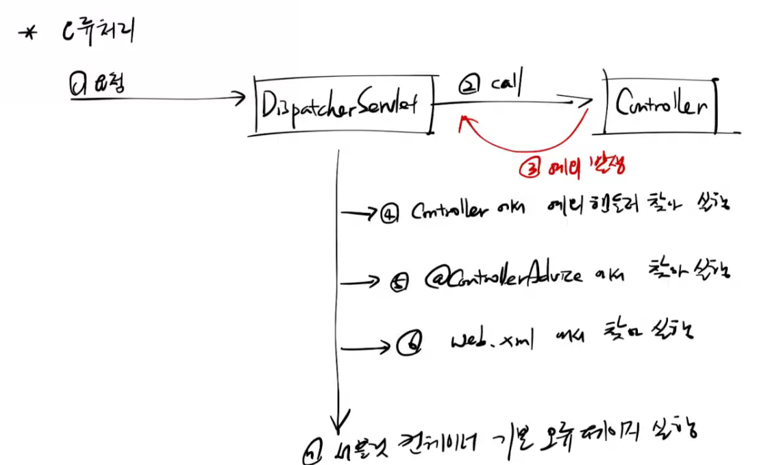 // Request Handler에서 예외를 던졌을 때 처리 절차!